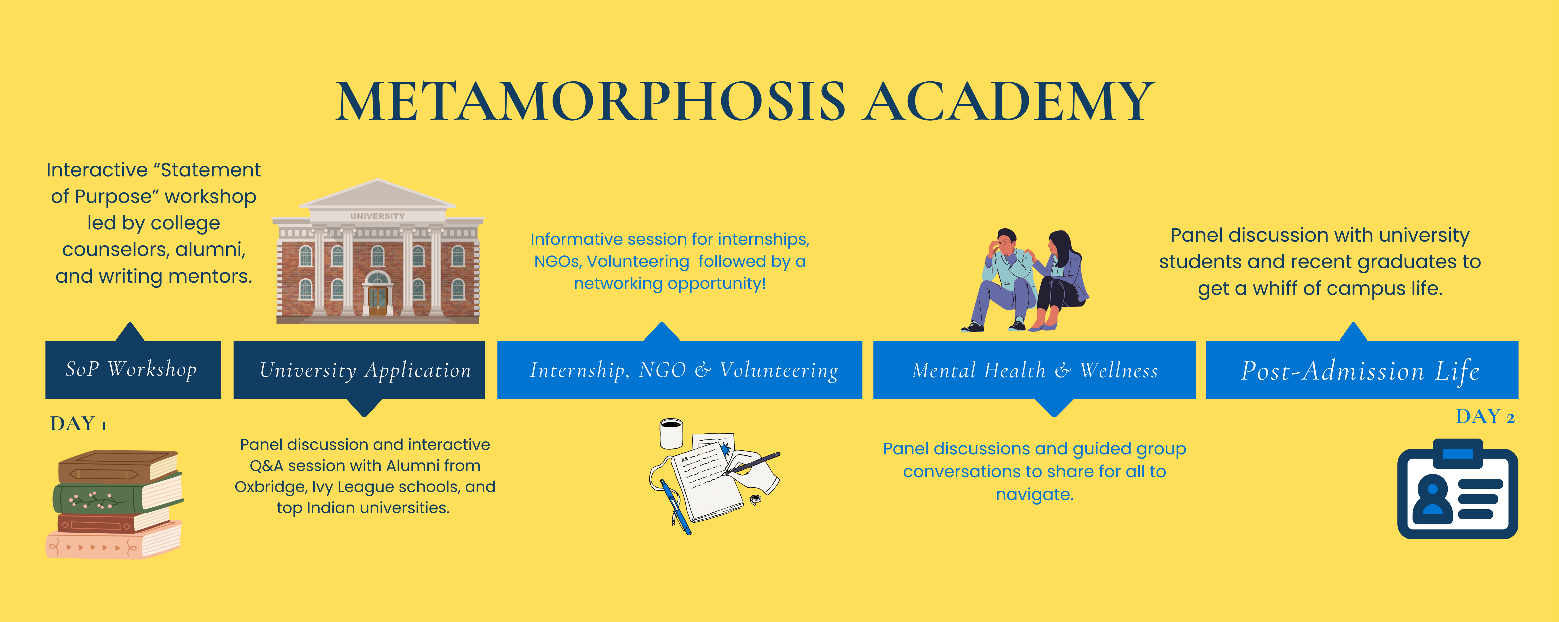Alumni & Current Students from Oxbridge, Ivy League Schools, and top universities worldwide will share their experiences.